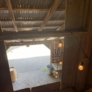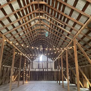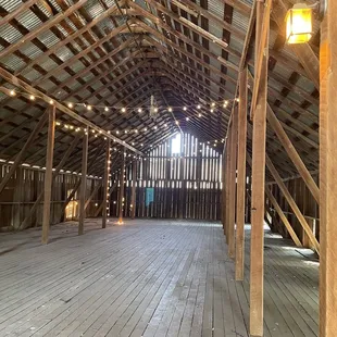 the inside of a barn