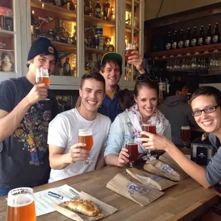 Enjoying craft beer and flat bread pizza on the Baseball - Business - Breweries tour.