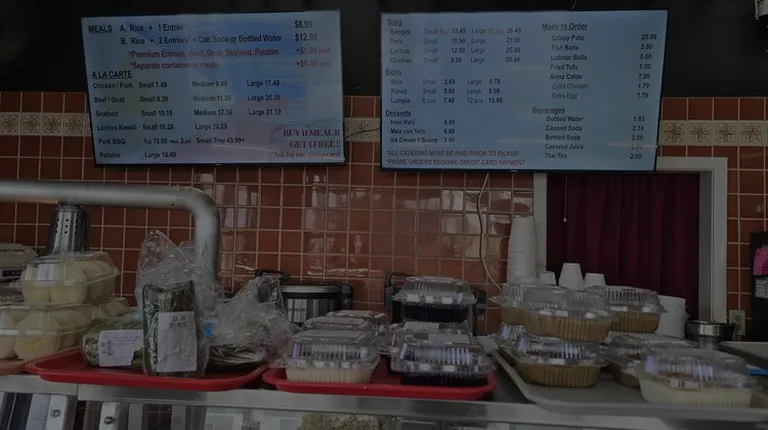 Nothing special here. Their food are not the worst, but definitlely not great either.What I like: The price, this place is cheap! I ordered the rice/pansit with lechon kawali and dinuguan. The cost: $14.08 (including tax) and it comes with a free drink (I got a bottled water). The serving size was great as well. They filled up my to-go container so much that it won't close completely.What I did not like too much: The lechon kawali was way over-cooked that it became dry, the meat used in the dinuguan were way too lean, and the pansit was a little bland.Overall, it was just OK, and is good enough if you're looking for Filipino food, at a very reasonable price.