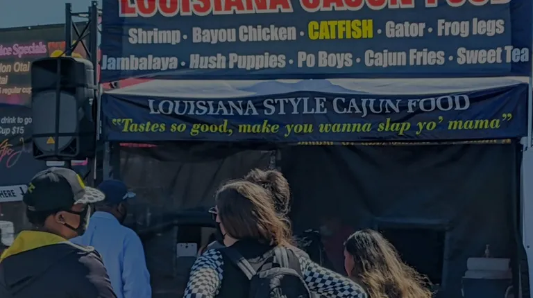 We tasted Soul Let's Eat (IG @soul.lets.eat) [Cajun Fish, Turkey, Ribs, Peach Cobbler] the FoodieLand Night Market - Berkeley during Fleet Week, October 8-10.We were stopped by the alligator fritters, as that's a protein we've been discussing recently (and that I've never had in my travels around the Everglades). $20 got us six pieces of deep-fried alligator bits (tasty) atop a mountain of unremarkable fries dusted with something middling-spicy.Enjoyed the novelty, didn't feel like there was any real value-for-money, would not repeat.