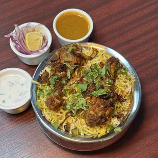 Food was really really good. Will definitely recommend to others . They serve really good chicken dishes and biriyanis