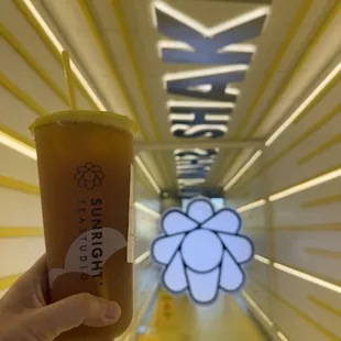 Cut and pasted from their website:"We suggest shaking your beverage 17 times before drinking it! Not just because it's our tried-and-true method of blending the flavors and textures perfectly, but also because we want you to stop and savor a happy moment. Even if it's only 17 seconds long."Quality/Quantity - One of my daughter's favorite tea places.I lost a bet, so I owed her a boba.She chose to get Strawberry Yakult with boba. Atmosphere - To-go only.No frills, no thrills.Cool signature decor, see pictures.Two self service kiosks, and of course, the bunch of kids ahead of us struggled to place their order... Felt like we waited over 10 minutes for them to place their order. I almost offered to do it for them. Even pay for their drinks just to move them along, lol.Plenty of mall parking.Service - Self service, so good.Well good after the kids ahead of us finally ordered.Price - $8.Owner Comment - Congrats on all your success with your 38 locations and growing.Cutted and pasted from your website, "Each Sunright Tea Studio location is independently owned and operated under a license from Sunright Corporation."