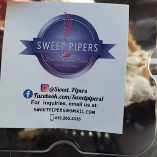 OLD REVIEW FROM A PREVIOUS YELP LISTING:In searching for Vietnamese food on Facebook, I stumbled across a Filipino Facebook group that had a lot of people selling their specialties. One of the first people I bought from was Rowena. Ever since I visited the Philippines a few years ago, I have been craving a good Buko (young coconut) pie. Based on the reviews from different posts on that Facebook page, her version is the one not to miss.While Sweet Pipers bakes from a commercial kitchen (Obviously, they have their own shop now), she sells her pies all across the Bay Area at different events. You can check out where they will be from their Facebook or Instagram page.As for the pie, it was simply great! Mind you, while I am Filipino, I am no buko pie expert. However, it tasted like the ones I had over there in the Philippines. It is not overly sweet, which is good, because it would pair perfectly with a nice vanilla or vanilla bean ice cream. You can heat it up if you want, but I personally like it cold. While this pie was good, they also have a variant with a layer of ube below the coconut (I'm more of traditionalist, so I stick with the original). The menu changes every so often, but you can find the likes of Egg Pie, Cashew Tarts, Cassava De Leche, Scones, and Butter Mochi Tarts. I've tried all of them and it's hard to pick a favorite.Again, make sure to check out their social media pages to see where they are and what their menu will be that week/weekend. Rowena and Jack are the best team and you won't be disappointed with any of their desserts.