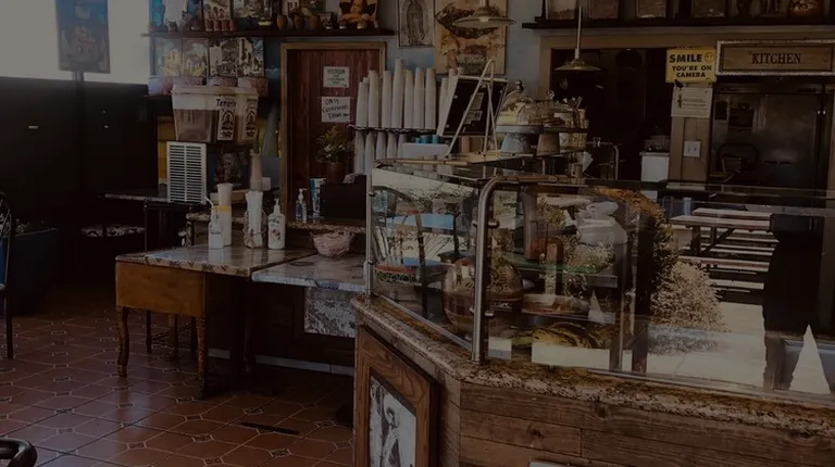 Interior of the restaurant, decorated for Dia de Los Muertes; lovely music playing in the background.