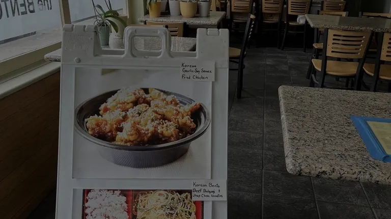 This was a lovely place to have lunch. I stopped in based on the fact that they had bento boxes. I was expecting Japanese but it turned out to be Korean. I chose a beef bulgogi bento with kimchi, jap chae, and rice. Everything was very tasty. The rice was a yummy mixture of black jasmine rice and sushi rice and had a nice semi-sticky texture and looked like Cuban moros y cristianos in color. There was one older lady working and we had a nice conversation. I would absolutely go back if I were looking for a quick bite but I deducted a star because this place has very little atmosphere and served everything in to- go containers. It could just be a sign of the times, they also had blocked off half of the restaurant. I think they were encouraging folks to take the food to go.