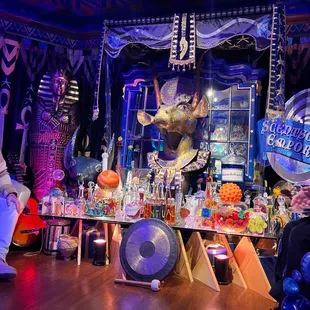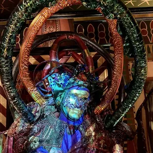I experienced "Phantasma: Embrace Your Fears" during Halloween season a couple years ago, and what an adventure into the afterlife! Cool sets, awesome props, even a live snake, and of course great actors and performers to captivate and intrigue guests. They made great use of the outdoor space around the property during COVID, and it was interactive, so actors would ask questions that inspired creative thought and imagination, and of course included commentary that incorporated a bit of humor while still staying in character.Fast forward two years, and I'm able to journey "Into the Rabbit Hole" and finally explore the inside of this one-of-a-kind museum. It's actually a home in a residential neighborhood, but that just means parking is pretty easy to find, since the shows/experiences are by reservation only, and limited to small groups. Gregangelo is the owner and also founder of Velocity Arts and Entertainment, a traveling circus troupe. He was also the guide for our journey into the rabbit hole last week, where my party of two joined another party of one, to transform into three bunnies, as we entered the premises. The outdoor decor and props were partially covered, perhaps being renovated/changed. But inside was a whole 'nother story."Into the Rabbit Hole" is basically a tour of 8 out of 27 rooms in this museum, where pretty much everything is art... the decor, the paintings, the furniture, the lighting, even the quotes and words hidden in various places. But there's somewhat of a storyline being followed (because as I mentioned, you are a bunny as you enter). It's definitely unique, I'd describe it to be something like Willy Wonka and the Chocolate Factory. Except, instead of Willy Wonka, it's Gregangelo. And instead of a chocolate factory, it's this maze of art and color, and symbolism, and stories behind the various props and items presented, strange corridors, choices to be made, plenty of thoughts and ideas for reflection. And you don't get to the next room without some kind of exploration or sharing of personal beliefs and feelings, or perhaps solving some sort of riddle. I liked not knowing what to expect, while also being able to appreciate the art all around. Some themes included a room full of musical instruments, a room focused on the circus, and an earth room. My favorite room was the Falling Star Room with a swing for sitting, and love tarot cards in Arabic but translated to English with words like "friendliness" or "attraction" to define a component of love associated with each guest (or bunny, lol).No there are no Oompa Loompas here unless you count the writers or other staff, but I swear Gregangelo is just as genius and mysterious as Willy Wonka, and the various rooms we ventured through were odd and whimsical, evoking curiosity, and challenging us to turn our dreams into reality. Maybe the song Pure Imagination should be playing, while exploring the little details of Gregangelo's humble abode!?!I've enjoyed my experiences at the Gregangelo Museum. In the end, I think we are inspired to become better versions of ourselves in some way.