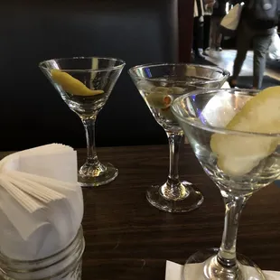 Front: VSS with Ketel. Left: Manhattan with Bulleit Rye. Right: Ketel Martini