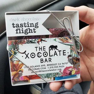 I decided to stop by the Xocolate Bar when I was wandering around Berkeley! Ordering can be a bit confusing as it was through a small half door and you couldn't physically go into the store. However, there was a cashier who explained their daily specials, walked through their wares, and answered any questions that may arise.I decided to get the dark chocolate-tasting flight which had various chocolates from different parts of the world. It was definitely interesting to see how various dark chocolates can be affected by the soil and other aspects of cacao bean cultivation in terms of taste! Out of all the samplers, the Madagascar chocolates stood out as it was tempered to perfection and had underlying fruit flavors. Therefore, if you're looking for a bar, definitely check that out!Overall, I probably won't go back as the service was not necessarily the best and the pricepoint was particularly high.