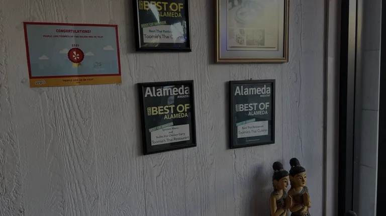 This restaurant has been here for years! We even lived in Alameda for some years & still never went, till last week. lol (As of Oct 2024)It's conveniently on Park Street where it's very busy. Passed by it many times. Big portions of food. Yummy.It's just kinda slow when asking for something like a fork or something, and this is when it wasn't busy. That's my only negative feedback. Anyway, now, I know this is a good Thai restaurant, finally after all these years not going. Haha It's holding up well.