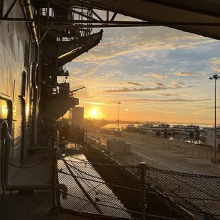 We were there for the Valentine's Dance with Death and Taxes Swing Band. The dance floor was full the whole night. We danced for a long time. There was a photographer there for us to stop by and get our picture taken for pickup within a half hour. We arrived late due to an accident in the Alameda tunnel and so we waited in line for snacks and drinks when we arrived. Airplanes inside all over. The bathrooms were a short walk and clean. We had seats where there was an open panel of the ship, so it was cold when we were at our table. There was parking there. A stairway and walkway into the ship, but the option of an elevator. View of Oakland, the Bay Bridge and San Francisco from the top deck. A night we won't forget.