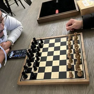 Relaxing with soft music, lovely wine, delicious charcuterie, and an amazing wooden puzzle. So nice to feel unrushed.