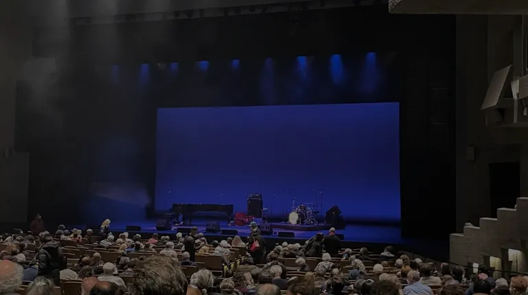 Yesterday was Nina's birthday and last night I took her to a concert by the Brad Mehldau Trio to celebrate. Because it was Veteran's Day, all the restaurants on campus were closed, as was the Student Union. We decided to have early dinners separately so we could secure parking in the garage under Zellerbach and not have to walk any great distance. I picked her up about 5:45 and drove over. The lights were on in the Student Union, giving us hope of a comfortable place to sit, but that was illusory. It was closed. There was an adorable young man at the entrance to the garage, collecting $18 to park. I showed him my blue hang tag and he asked if I had a reservation. There are six ADA parking spaces. I told him no, that I didn't know it was an option. I will know for next time. We drove down into the garage and I found a space by the stairs and ramp up to Zellerbach. There probably is an elevator, but I didn't see where it was. We walked up and saw that the ticket office was still dark. We walked over to the Student Union and that's when we discovered it was locked. There were a couple of wooden logs w/ seats carved out of them in the plaza and we took spots facing each other. They were surprisingly comfortable. It was chilly but not cold. After half an or so hour I saw the lights on in the box office so we walked over.The nice young woman in the box office said we could probably sit inside while we waited for the doors to open to the auditorium. We walked to the open door to the lobby and spoke w/ another nice young woman who asked if we were there for pre-concert dining and we said we hadn't been aware it was being offered. She said we couldn't come in for another 7 minutes. I asked if it would be possible for us to come in and just sit down somewhere out of the way. She went and checked w/ someone and said we could take the elevator to the 4th floor, which we appreciated greatly. We walked over to the elevator, where we were greeted by an older man who asked us what we needed. We told him and he pushed the elevator buttons and sent us on our way, saying he'd see us later.When we got to the 4th floor we found the women's restroom right beside the elevator, a welcome sight. We used it and then sat at a table overlooking the lobby. Nina bought us cups of tea which tasted and felt good after sitting out in the chilly night. Eventually the doors to the auditorium were opened and we took the elevator back down where we were welcomed back by the man who had sent us upstairs. We went into the auditorium, where we found our seats, two in from the aisle. By happenstance the two seats on the aisle remained empty so after the first number we moved into them, a great improvement because it got us out from behind the two tall men sitting in front of us. The concert was wonderful and I enjoyed watching other audience members enjoying the music, including the two tall men. When the concert was over we returned to the car and were able to leave the garage more quickly and easily than expected. Alan and I had returned to Zellerbach many times since my initial review, enjoying many concerts until the pandemic shut things down. Last night was lovely and I'm sure Nina and I will return in the future.