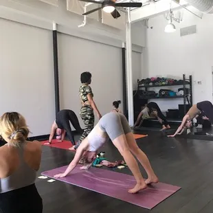 I really like coming to classes here! The entrance is on the north side by R & J Lounge. I definitely entered through the door on the wrong side my first time, because I didn't realize you had to walk around to the other side. Power flow yoga was new to me and the fast pace really gives you a good sweat even without being a heated studio. They provide everything you could possibly need including a water fountain, mats and towels - at no charge! I love being able to bring a reusable water bottle and filling it up here. It's crazy how many studios don't have these things for their clients. They also have locker/changing rooms. I like how one side of the studio is glass windows, so it has an abundance of natural light. It's not a huge space, but they can fit quite a few people in there. They have a lot of fun, unique events throughout the year as well with cool themes around different holidays. They also do teacher training if you're ever interested in that!