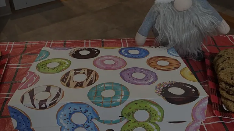 a gnome and a box of donuts