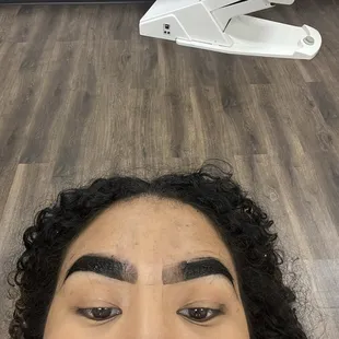 If I could give this place zero stars I would, I went in for a brow, lamination intense. I was there for about 45 minutes close to an hour. She started to do the lamination and as soon as she was done, she went ahead and put the eyebrow tint on immediately after I did tell her this was the first time, I've done this and she reassured me that they were going to look great after she was done with the tinting. She went ahead and wipe them off and they were extremely dark almost black and they did not lighten up at all. She told me not to mess with them for 24 to 48 hours, however, because of how dark they were, and that they looked, I waited until the next morning, and I clean them with my water not to mention many of my natural eyebrows were just flaking off of my face. When I asked her why they were so dark she said that it was because I laminated them immediately after I asked her. Why did she let me know that before applying the tent if I had told her it was my first time and she knew that they were gonna absorb the dark color. She should have used a lighter color or let me know before hand and then I should come back later, also the next day I sent her a picture of how horrible my eyebrows looked and she offered me a 50% discount on my next visit. I will never come back to this place. This was the worst experience I've ever had and it's been once and I still have patches missing from my eyebrows. I highly recommend that nobody come here. Please look at the photo Attached before coming here. I'm TRAUMATIZED.