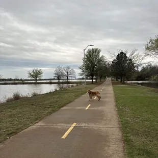 We love boomer lake! Come out here often during the day when it's not busy. Plenty of sidewalk to run, and get a 4k in! Boomer has miles of walking/running availability! Dogs must be on leash, but if you get there early enough, no one is around. I always leash my dog when passers/runners are coming, but it's nice to be able to let her roam a bit when no one is there but us. Nice escape from the city while being in the city.