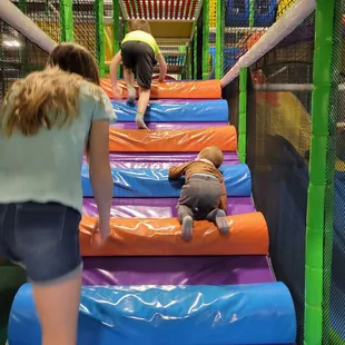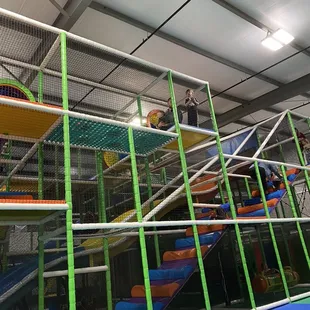 This is a really fun space for kids!3 stories of play space, plus a little pretend fire station, doctors office and grocery store. They have a small area for children two and under so they don't get trampled by the bigger kids. Great music playing! FREE COFFEE FOR THE ADULTS! The play center is huge and you can literally get lost! When you're an adult trying to chase a quick moving toddler who can run the minute mile, you can't blink or you'll lose them! The kids had SO much fun!..... I'll probably be in traction tomorrow