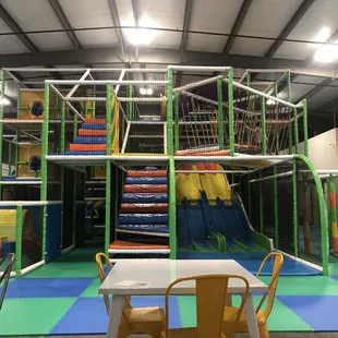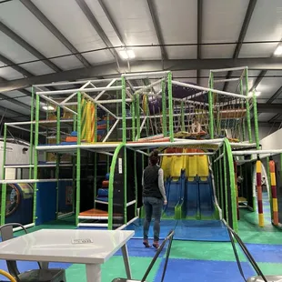 I cannot say enough GOOD things about this place. My son ABSOLUTELY LOVED his time here. He let out so many squeels of delight and laughter the whole time we were there. He is just under 2yo and came with a 6yo and 11yo and they all had a blast. I felt very safe with letting them play.We came on a week day morning so it wasn't too busy but had enough other kiddos to make it fun! I love the parent lounge area. They also have fairly priced snacks and drinks and free coffee! The slide is epic and so much fun! All four of us rode down together weeee!I HIGHLY recommend and will be back for sure!