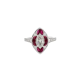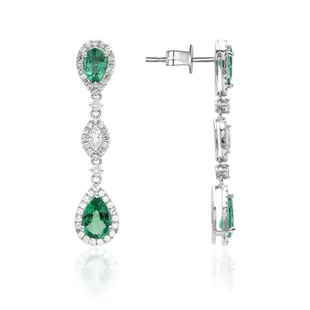 18kt white gold ring with a 1.08 ct oval emerald, and is accented with 12 custom-cut emeralds weighing 0.89 cts, and 76 round diamond accent