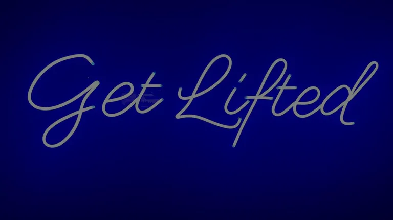 a group of men standing in front of a neon sign