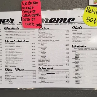 Menu at the counter where orders are taken