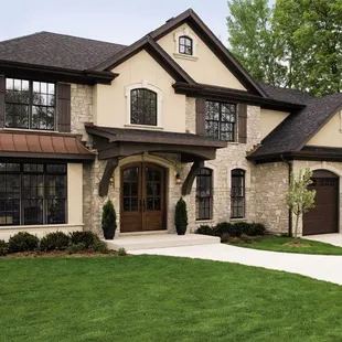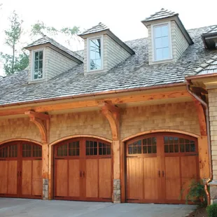 Amarr Carriage Court Designs. Bradbury design with 3 Lite Arch Windows and Decorative Hardware