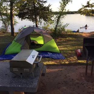 What a gem of a park! We had a delightful stay here the other night followed by a morning swim. I really liked the cooking table in addition to the picnic table. I woke up early and walked my dog by the lake and it was so peaceful and quiet with lots of birds, even a heron wading in the water. The only thing we didn't love was all of the litter. It was truly appalling, even though there were plenty of well maintained trash cans around. It was all along the waters edge as well as all around our campsite. The bathroom ms were pretty gross as well...come on people- have some respect! Anyway, we stayed at a pristine campground last night where we were handed a garbage bag at check in, so I wanted to pass along the idea!