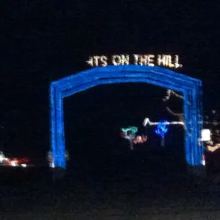 There was supposed to be Christmas lights 6-9 pm. No Christmas lights!The park itself is 192 acres with several playgrounds, ball fields, recreation center, outdoor pool, disc golf, restrooms and picnic areas.There are large rock formations where I have seen people rock climbing. There are good views of Tulsa. In the past, during low use times in the park, there has been illegal drug activity. To combat that, they close off some of the park so they can better supervise the open areas.