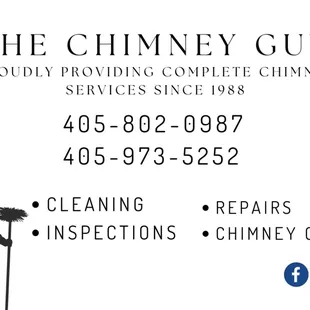 last year Chimney Guy serviced 2 wood burning stoves for me. He was thorough and did a really good job. Reasonably priced given that he drove from OKC to South of Ada. Friendly and respectful. The wood burning stoves were very clean and looked brand new!! i will use him again this year.