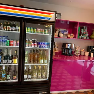 Tasty beverages, including beer and wine, and yummy snacks for sale in our lobby.