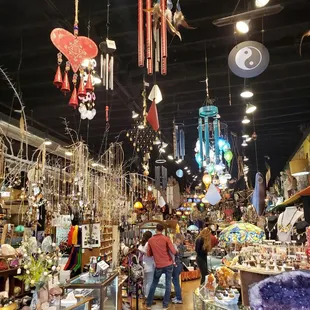 Me and my boyfriend came here for Valentine's Day as a last minute thing to do before we got dinner and drove back to Tulsa. I had just saw it on Reddit as something you should go do if you're in OKC, so we tried it out. I love Crystal shops and this is unlike one I have ever been to. First of all, there's so much to look at in this store it's almost overwhelming (but in a good way). I probably could've been there another couple hours if I had time just to be able to look at everything in the store. There's three separate sections/ rooms in the store and it's like a maze getting through everything. Their jewelry selection is absolutely insane!!! I wish I got a picture of it. Everything in this store is so freaking cool. They were also offering tarot readings in a room in the very back! They have incense, tapestries, crystals, geodes, ramen bowls, cups, figurines, dream catchers, fragrance oils, books, tarot cards, and literally so much more. The vibe of this store is so chill. The staff is so nice and quick to offer any assistance. The items here are affordable depending on what you're looking at, but also very valuable. Since we came on V-Day they gave us free champagne with juice and there was a woman creating free poems typed on a type writer for those who wanted one. Will definitely be coming back. I wish I lived closer just to come here all the time!