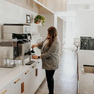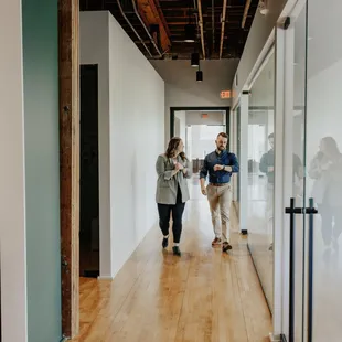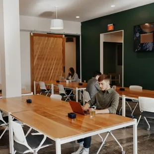 Crew Workspace is a great environment to work in and get stuff done. Bekah and LaKrisha are the team who run Crew and they are phenomenal! Any questions or issues, they are always ready and willing to help. They have the best customer service and make the space so inviting and warm. The first floor features drop in work space that can be purchased by the day or month packages. The second floor is reserved office space and all of the offices are great sizes. The second floor has so many amenities, some of which are: hot coffee, cold brew and beer on tap, snacks, free printing and shredding, awesome WiFi, weekly happy hour and yoga for members, and so much more! My favorite thing about the space so far is how bright and open everything is. The green walls and velvet furniture are great accents to the white and wood space.