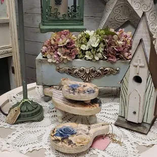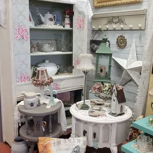 So pretty. A touch of Shabby Chic and French Country. The booth is eye catching and neat. Stop by and check it out. Stock is updated often.