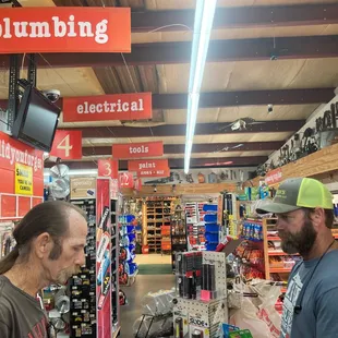 Went in with an auto part knowing it was probably going to be a jury rig. Mr Clean behind the counter was more interested in eating than helping. After I asked a young lady about it she referred to Mr Clean and he looks at it and says he does not have anything. To difficult to really help, when I turned to look myself my son said that Mr Clean had a derogatory comment under his breath that the young lady seemed to find funny. I would not go to this store again if Lowes closed its doors and Home Depot filed bankruptcy. Really don't think going in and complaining would help.