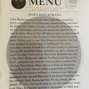 Ate here again for dinner and took family! Everyone loved it once again. As for anyone that's goes in to a restaurant and gets over looked and is to dumb to get someone's attention then leaves and writes a bad review needs to go somewhere else. I like DelRancho too but it's not the same as Fites! Ignore that review! Has nothing to do with the quality of food and portions here are rather large also!