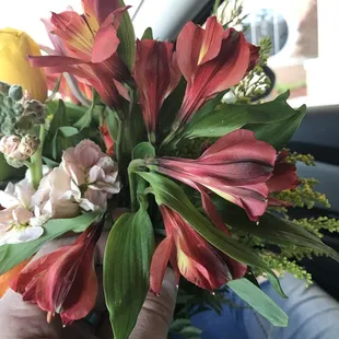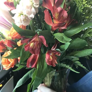If I could give a -10 that's what I would give to this horrible flower shop that's all I have to say on this place they are horrible horrible horrible horrible the customer service is horrible their flower arrangement is horrible the store stinks and the flowers that I got look like they were dying they don't even look fresh but that's why go to Morrison floral Company but I made the mistake of going to somebody different you know when you've been using the same people for so long you need to just stick with those people I'll be using Morrison floor company for the rest of my life and I'll never go anywhere else for flowers Because when you try somebody new out they disappoint you and Flowerama is a horrible horrible horrible flower company. But that's OK because I got that flower arrangement for free I got a full refund from the company so I really can't complain about a free flower arrangement even though they do suck How do you deliver the wrong bouquet that's what they did they delivered the wrong bouquet of flowers to my wife for her birthday and I had to go to my wife's job get the flowers take them back to Flowerama and get the right bouquet and what do you know they had the right bouquet made and ready for me when I got there but it looks half assed made and as you can see in the pictures the flowers are wilting and not fresh at all I will never again use Flowerama unless I need wilting dead flowers and then they are the perfect place to go Oh and if you want to be disrespected to because they were highly disrespectful and unprofessional in dealing with this situation