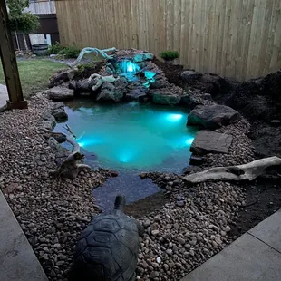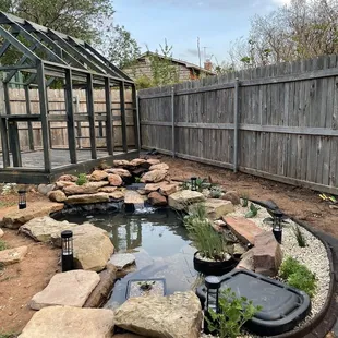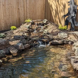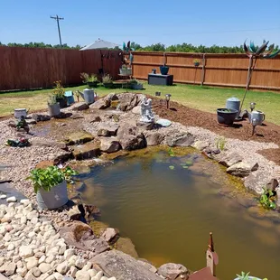 We have been dreaming of a koi pond for a while now and the one we got is much nicer than we imagined! They came out and measured our space. they were very efficient and knowledgeable. More than anything I want to point out how helpful they were. We have never had koi before and they were very helpful in assisting us with what the fish need and helping our confidence. The installation process was easy. The guys came and were courteous. They worked through the heat and maintained a positive disposition. The pond is beautiful. I highly recommend.