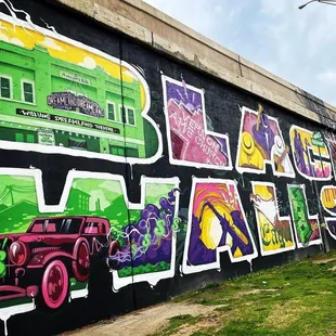 Mural on the freeway wall next to the Greenwood Community Center parking lot