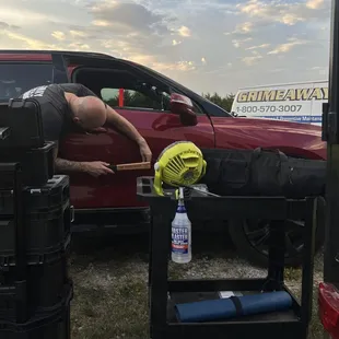 Grime Away? From my experience today it was more like "Grime On Vacation." I had my car detailed and paid for a shampooing of the seats and carpet as well. The floor was vacuumed, the outside was washed, but the car was absolutely filthy. The seats were soaking wet so I couldn't tell when I looked at it that they weren't actually cleaned. Turns out the grime were just on vacation at the beach and they used my money to fund it. When the seats dried they were just as dirty as when I got there. When confronted he said they had no steamer for the upholstery, so this place really doesn't even have the ability to clean the seats or carpet. Very disappointing and a complete waste of money. I could've done the same thing at the car wash with a couple dollars in quarters. I would not go back or recommend this place to anyone else.