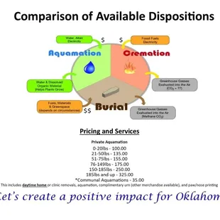 I can't say enough positive things about Hesvenly Pets!Everyone that I made contact with, from my phone call to get information to picking up my sweet Lucy, were phenomenal!I had a sweet mini schnauzer that I inherited that had a multitude of physical ailments and was taking 5 different medications. She had a hard life before me and unfortunately I only had her for just over 6 months before she passed in our arms. We had grown to love her immensely and miss her dearly.The phone call was made a few hours after she passed. We found out how much it would cost and after asking twice, as we could not believe how inexpensive it was, we got the information as to their location. We also found out that they offer to pick up your furbaby if you so desire. We decided we wanted to take her, so we could see the place and to also give us a bit more time with Lucy. We also found that they are available 24 hours a day, seven days a week.We made the long drive to Heavenly Pets, which was difficult to find, but they made it just a bit easier to find with arrows as to where to park and to find their entrance.When we first arrived, noone was at the desk, so we waited a bit and soon a gentleman came to the front. He was tending to someone else's baby who had come in just before us. He was kind, offered his condolences on our loss and explained that the process they utilize is with water and the process is more environmentally friendly but does take longer so it would be a week before we could pick her up. He showed us the urn or beautiful box that her remains would be in and explained they would take her paw prints and put them on the outside of the box along with her name, date of death as well as a few words that we would like to add. It was all very nice. He was very profesional but he showed compassion and understanding and offered us ss much time as we needed with Lucy before he would take her. We really appreciated that.When I picked up her remains. I was greeted by two women. They asked for Lucy's name and then one went to a room in the back to get her. The other woman asked me what kind of animal Lucy was, how old was she, how long did we have her, questions that made me feel they cared and wanted to know about her life. I was touched by this compassion. They didn't need to do that. I mean, I already had paid for their services when I dropped Lucy off, they had my business, they weren't making small talk to build a so-called rapport so as to get my business...they already had it. This was true compassion, real kindness, that they offered and freely gave me. When I cried as I received that little pretty wooden cherry box that held my Lucy, the other woman offered me a hug. I felt the genuine caring this woman had, the desire to offer comfort to another human being who was hurting. I knew that their service was much more than just a business. They offered more than cremation for people's pets. This is their calling, their mission, if you will. They have heart, truly caring about the human side of their business. I needed that, although I didn't know or understand it at the time. I sincerely appreciated their genuiness, compassion and caring hearts and how freely they offered all of it.If you are in need for cremation services, first, please accept my heart-felt condolences. I am sorry for your loss, truly. But this business, which it offers, oh so much more, cremation for your furbaby, they have and offer compassion and sincerity in caring about you and your grief process. I have three other urns that sit next to Lucy. Four different crematories that I have had used due to the passing of my babies. But, I tell you what, Heavenly Pets in Moore will be the ONLY place I will take my babies in the future. I unequivocally and whole-heartedly recommend Heavenly Pets in the event of needing cremation for your furbaby. They are VERY reasonable in their pricing, they are professional, they do their jobs very well and they care, genuinely care for their customers.