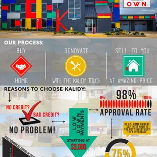 Bought a house from them years ago. 1st thought house looks amazing. SMH. Don't go any look underneath the surface of anything. You will be shocked. My house was flipped so of course everything looked to good to be true. It was. Honestly I don't know how it passed inspection. The first year I lived there it drained me of expenses that were done half ass. I see these homes advertised and all I can say is don't walk but run. Don't make the mistake I did. In the past I found out they used Home Depot so if I needed something replaced I would find it there. I have asked people at Home Depot in the past if they heard of people having issues with Kalidy homes and they laughed. Multiple people told me how cheap they were with flipping homes and doing not quality work. To my surprise after looking for my 3rd fan that wasn't working when I went to Home Depot they informed me they are no longer doing business with kalidy. To my understanding they now work with Lowe's. I never leave reviews but if I can help 1 person to not get taken advantage of like I did it will be worth it. Terrible company. If you don't believe me ask around other than reviews that have them with a 5 star. They are probably writing those under different names. Do your research