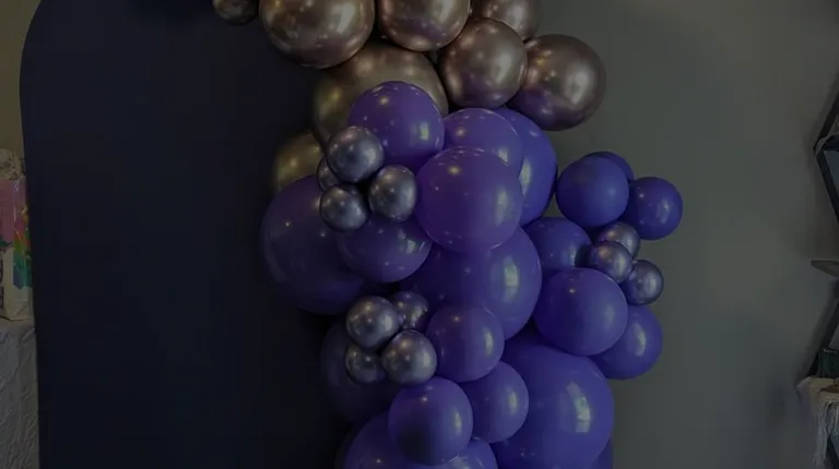 Baby shower This is our luxury balloon garland with drapes, teddy bear air balloon, chair and rug.