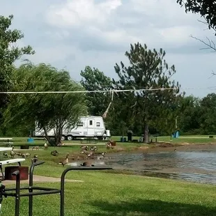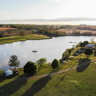 This is the best little RV park I have ever found. It is a hidden gem off the beaten path. The rv sites are located at the ponds edge. Everyone gets their own piece of shore line. The large deep pond is well stocked. They also have a nice fishing dock, free use of the canoe, and a swimming/fishing dock in the middle of the pond. It is peaceful, quiet, beautiful views. Far away from city life. The owners are so friendly and accommodating.