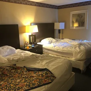 Management was super nice. I wish the hotel was as nice as management. The first room was dirty. So we switched. The second room had a water leak. Third room had bugs. After all of that I decided to try and get a refund. They were very understanding after all the inconveniences in 24 hours they gave it to me. I wish all hotel staff were this accommodating and helpful. Their customer service was awesome I just wish the hotel was in better shape because I would have stayed. The breakfast was awesome too!