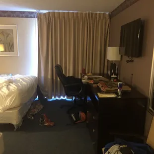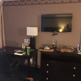 the room tv didn't work, no microwave, you have to use a plunger to flush the toilet stool, they over charged me for 2 weeks then they turned around and had no water on and said they working on it. mind you i've been waiting on maintenance to fix my refrigerator since last friday oh yeah they wanted to constantly remind me that the room was non refundable i guess i would've been off in the shelter..the staff is rude minus 2 of the people and housekeeping doesn't come until you leave