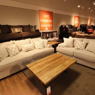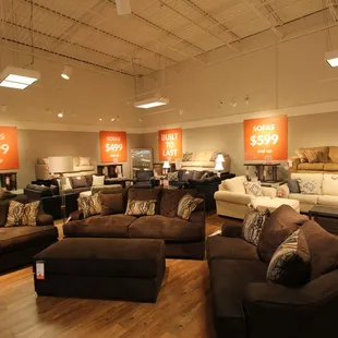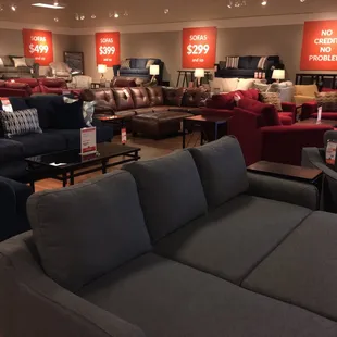 I ventured here looking for sectionals and while I didn't find a sectional I did find a fabulous lamp that was originally retail value of $498 (who in their right mind would pay that) for $77!! There was absolutely nothing wrong with it and it is a solid heavy lamp. I just couldn't resist!They had a very great selection of decorative accents, artwork, lamps, mirrors, etc. I was more impressed by their home accessories offered rather than their actual furniture. They had a random selection nothing very consistent. If you liked one chair inside you couldn't find a second but that one chair was greatly reduced in price to make up for it. I dealt with Wick who was very friendly and not salesman pushy like some of the others I noticed in there were being. The store was very big they even had mattresses inside!