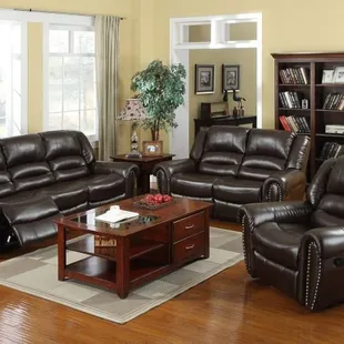 Palomino Motion Furniture. Includes Sofa Drop Down, Loveseat Console and Rocking Recliner.