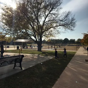 We like this park it's nice and big. Has a sidewalk around the whole park you can run, walk or walk your dog. Has tennis court swings and a playground for kids it just seems it's always so packed on the playground so we had to find another playground to go to.