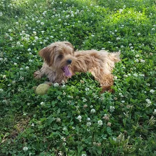 In our quest to find the paw-fact dog park we headed to Midtown Mutts. She really enjoyed it, but the small dog side is pretty much an after thought. The large dog side has swimming pools, picnic tables for humans and lots of toys. The small dog side is pretty much a big yard. Still she enjoyed running the fence line chasing the big dogs.
