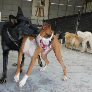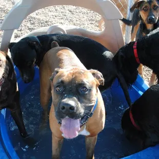 All three of my dogs have done daycare here at some point, and currently my little one is still going every day. They're great with the dogs and mine comes home totally worn out every day! He gets excited to go every morning. The facility has been clean every time I've gone in. I've never used the boarding services, but I can definitely recommend daycare!